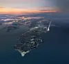 Illustrasjon av Andøya, med en rakett på vei opp fra den nye romhavnen.