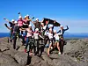 Fornøyd gjeng på toppen av Ravnfloget.